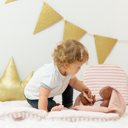 Its wrap shape and hood allow to completely cover your baby to protect him from cold and drafts.