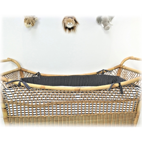 Reversible, it is made with two soft cotton with timeless patterns and has a high quality rigid padding.