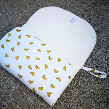 Een zachte en absorberende badstof aan de binnenkant, met een comfortabele vulling en een grote binnenzak om de nodige verandering aan te brengen.